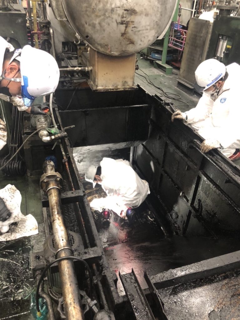みんな油まみれになりながらの作業💦